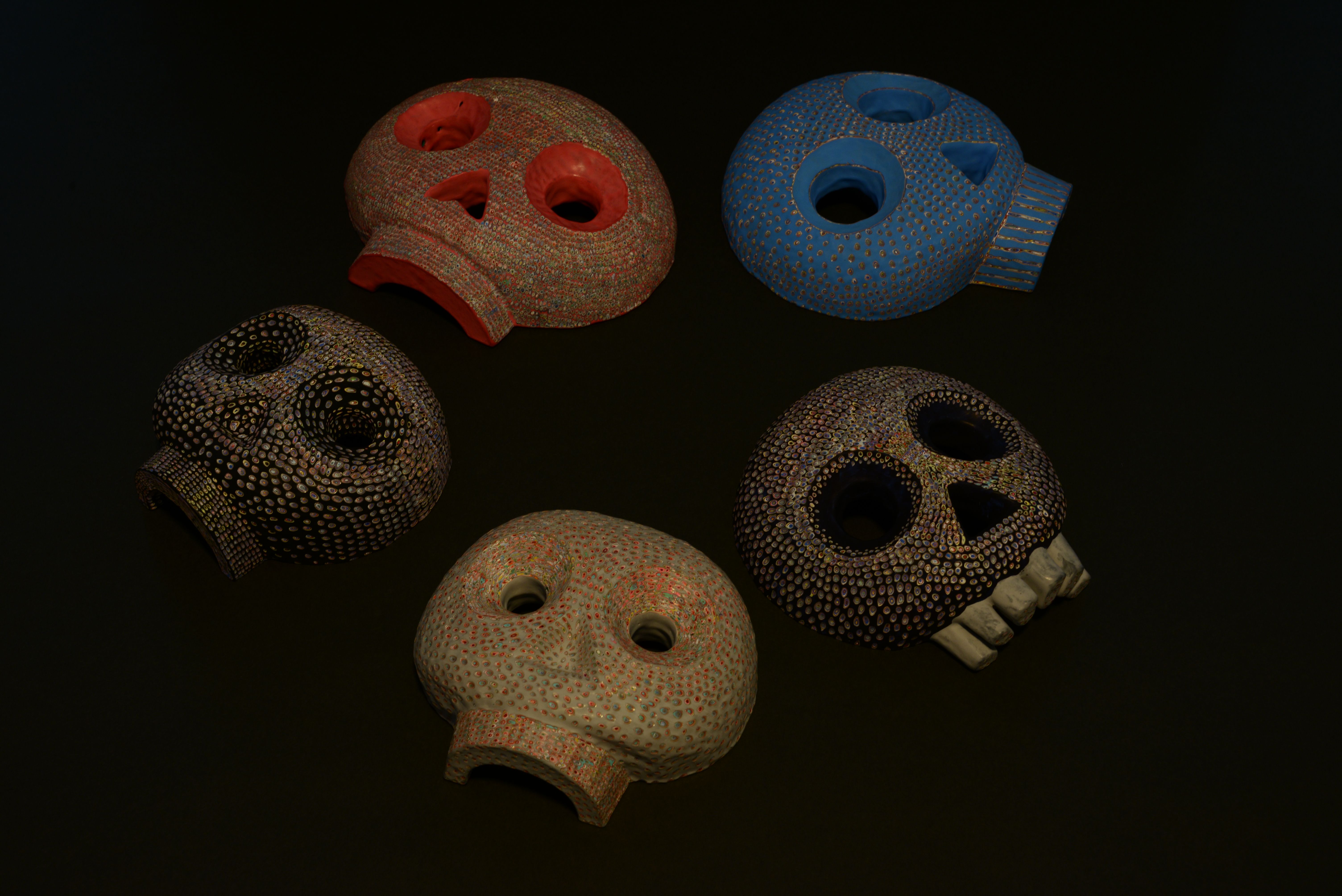 私は木彫に色を塗り重ねる。