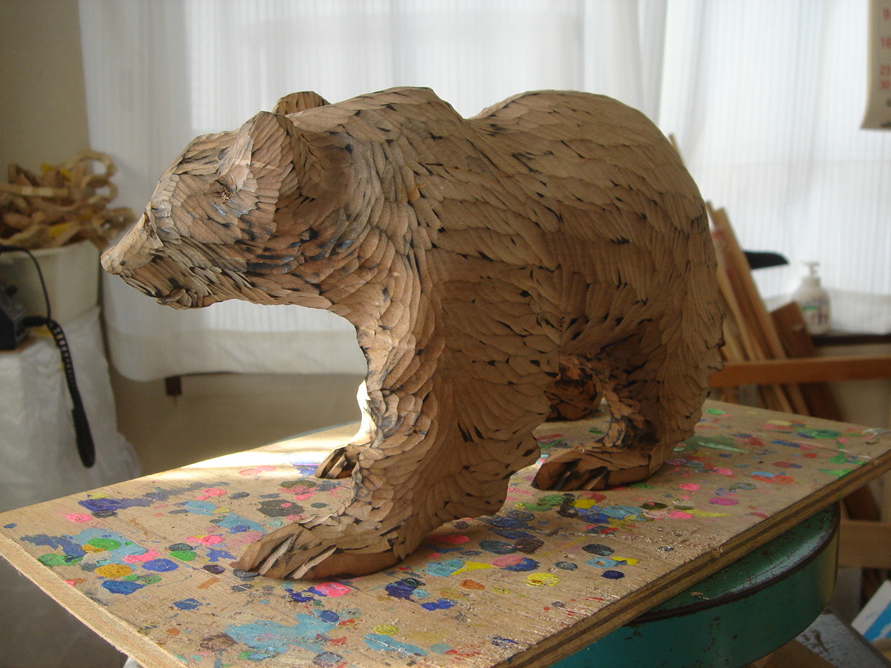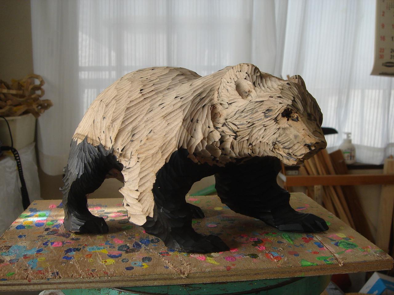 クマ作品を制作中