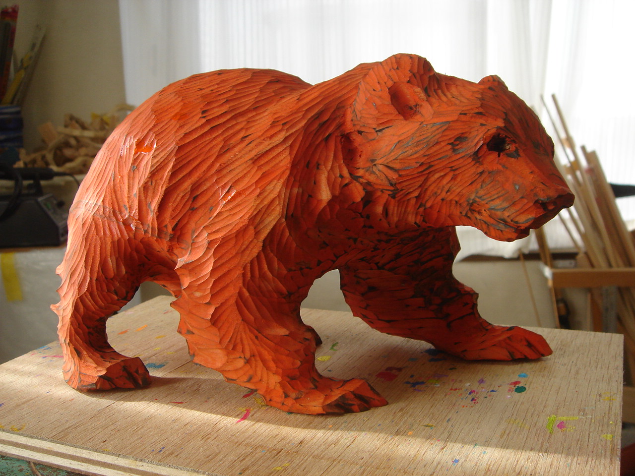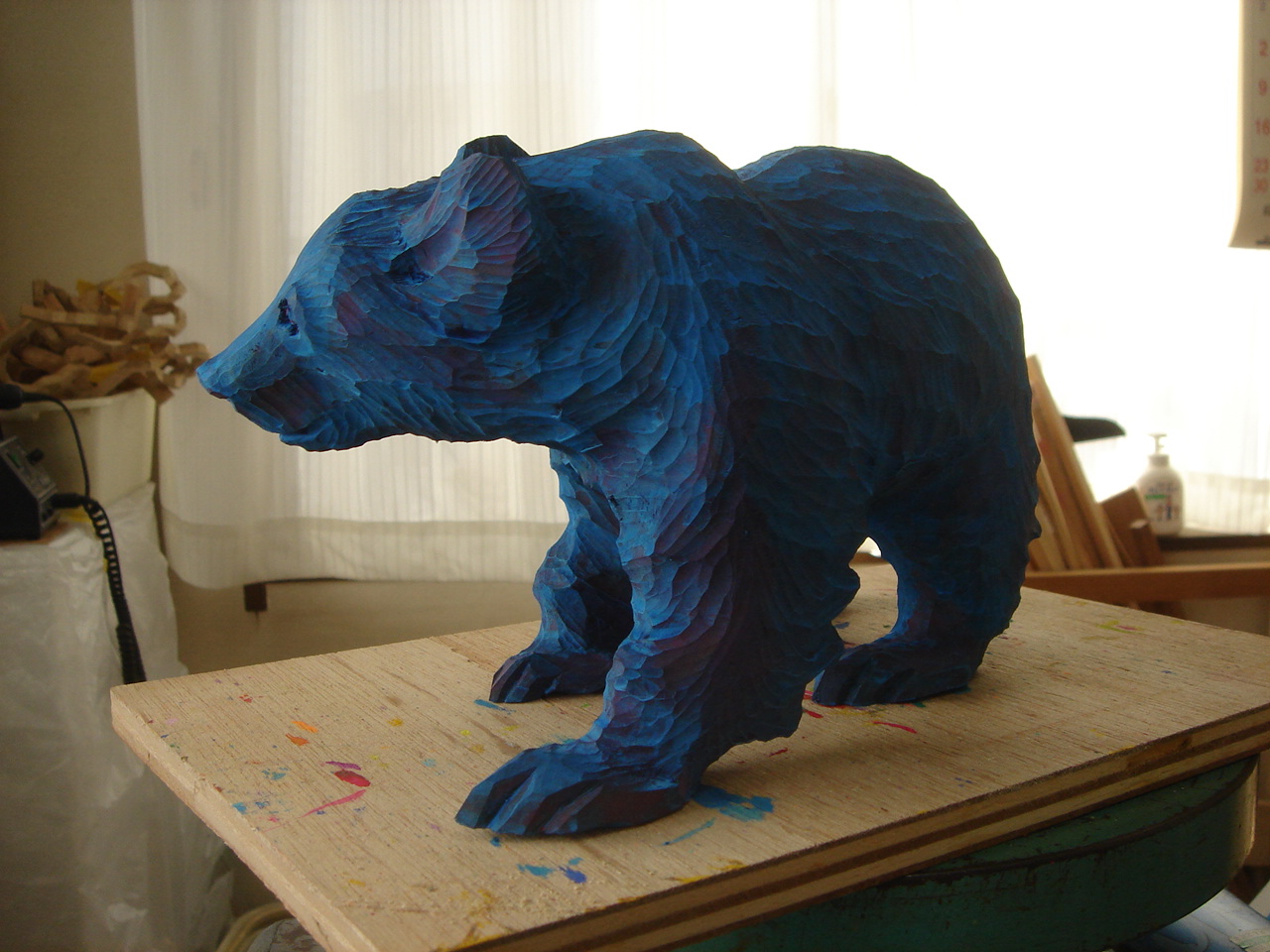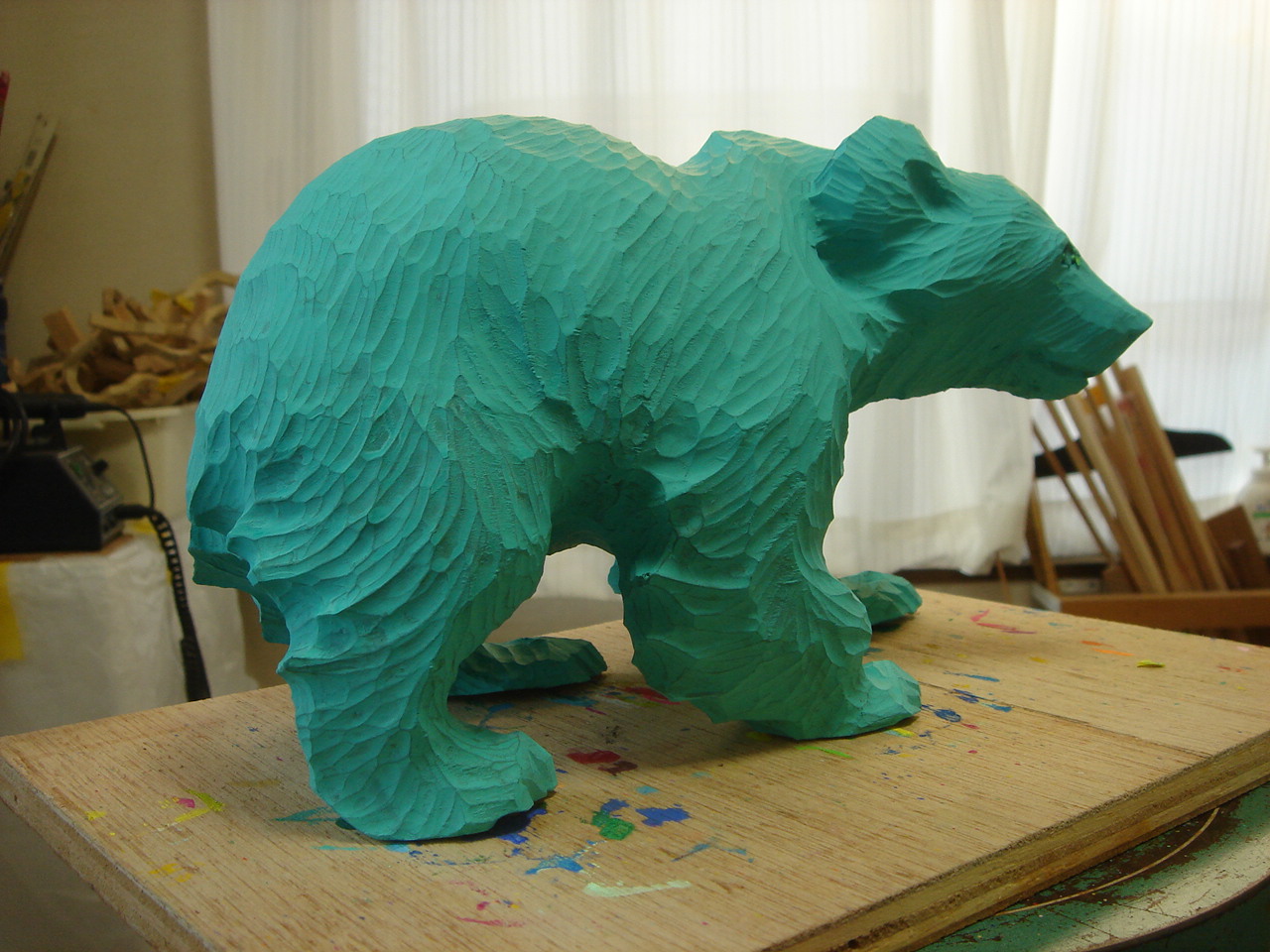 買ってきたクマの置物の塗装を丹念に削っている所です。