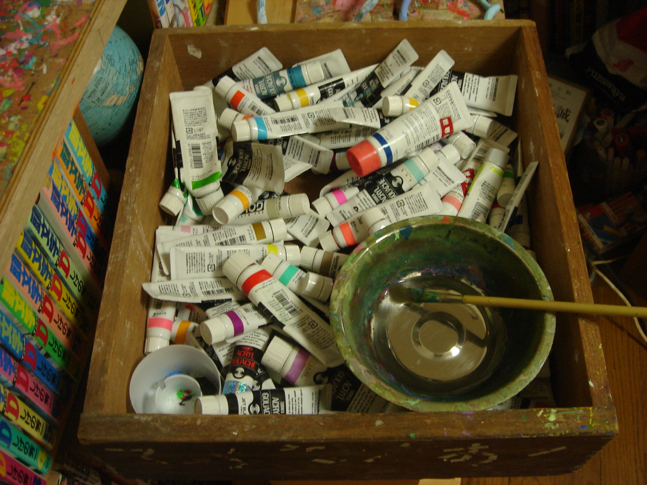 まずは、昔の作品たちは壁にくっ付けて、制作できるスペースを確保